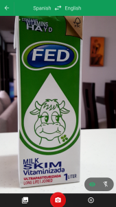 You can see in the picture an example of boxed warm milk. Next to it is a screenshot of me using the translator in camera mode. You can see… SKIM! If you move the camera around you can get pretty much every word.